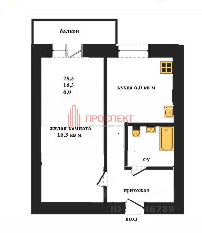 Общая площадь: 30,6 кв.м. + застекленный балкон