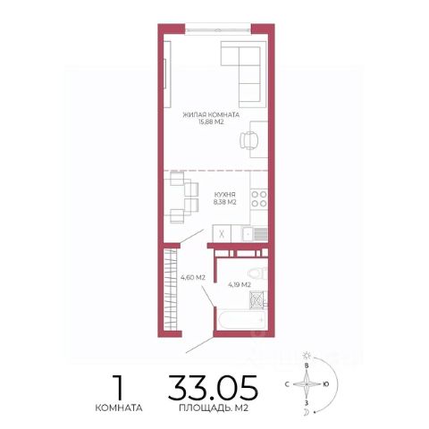 Арт. 128257767 Продается полноценная однокомнатная квартира с красивым видом на город по адресу: проспект Строителей, д.126.