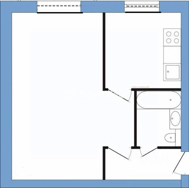 ОБЩ. ПЛОЩ. КВАРТИРЫ: 34,0 кв.м (комната 17,8, кухня 6,4, коридор 6,5, сан. узел совмещенный 3,3).