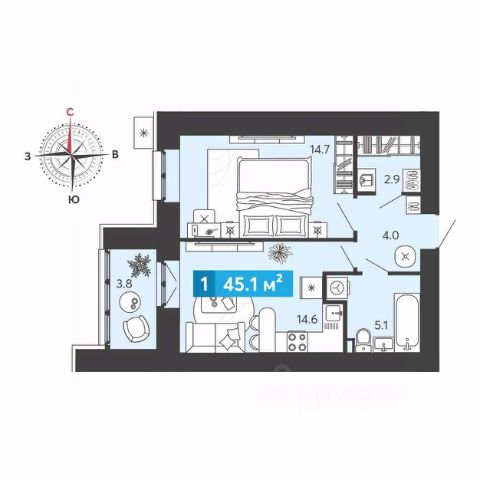 Продаётся 1-комнатная квартира в строящемся доме (дом 3 (Феникс)), срок сдачи: III-кв. 2026, общей площадью 45 кв.м., на 3 этаже. ЖК "Созвездие" - это жилой комплекс комфорт-класса из шести домов (17, 25 и 30 этажей), расположенный на берегу озера и отвечающий последним технологическим стандартам.Двор ЖК "Созвездие" спроектирован закрытым, здесь будут космические цветы и беседки в виде звездных систем, необычные детские площадки и широкие дорожки в окружении зелени, зоны спорта и солярия.На территорию ЖК можно будет попасть через единую входную группу, где на первом этаже появятся пункт охраны, колясочные, установят почтовые ящики, обустроят комфортную зону для встречи гостей. На втором - соседский центр площадью 500 кв. м с детской и лаундж-зоной, игровым пространством и даже уютным кухонным уголком.