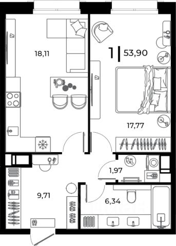Продается 1-комн. квартира в ЖК "SKY PARK -2", который строит компания "Ремстрой" по адресу ул. Конституции СССР 1 на 3 этаже, общая площадь данной квартиры 43,69 кв.м. жилая 16,05 кв. м. кухня 11,89 кв. м.