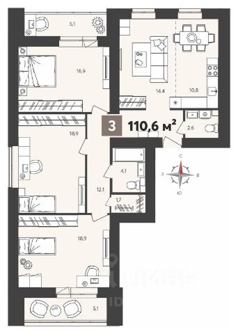 - кухня-гостиная 15,9 м2) с выходом на открытый балкон;