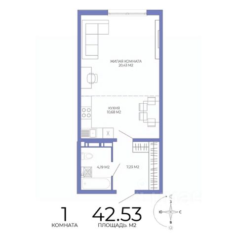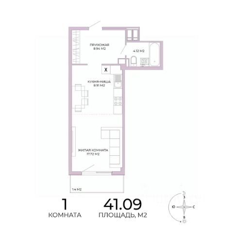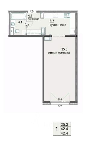Жилая 28,4 кв.м.