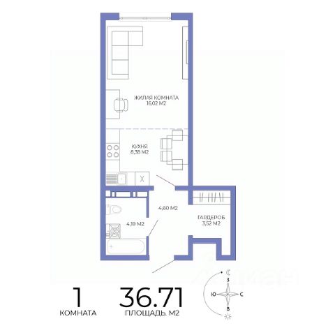 Арт. 117319377 Продается престижная полноценная большая однокомнатная квартира с предчистовой отделкой по ул. Щербакова 71 с шикарным видом на город.