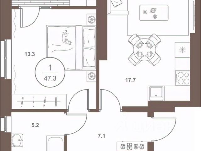Общая площадь 45,9 кв.м.