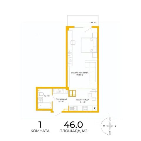 Арт. 128257767 Продается полноценная однокомнатная квартира с красивым видом на город по адресу: проспект Строителей, д.126.