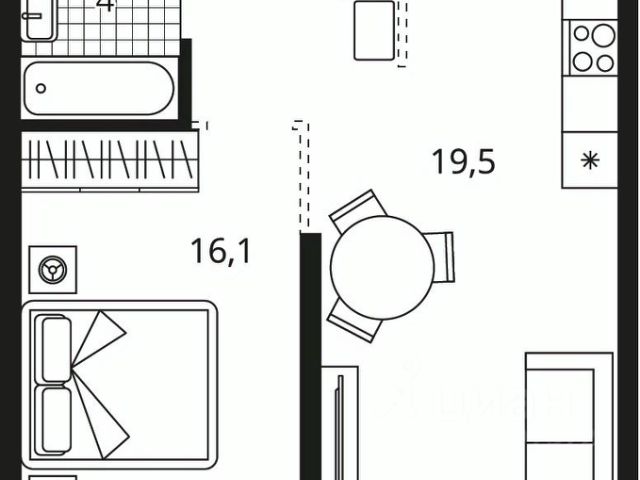 - кухня-гостиная 15,9 м2) с выходом на открытый балкон;