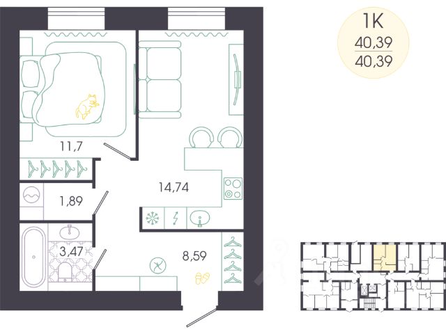 Общая площадь 31.4 кв.м.