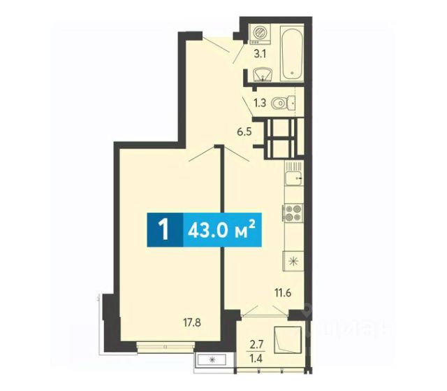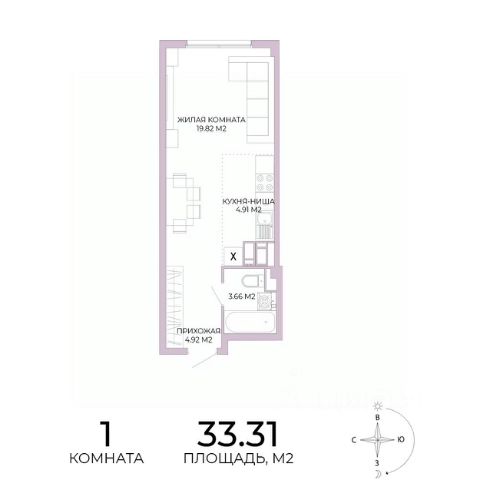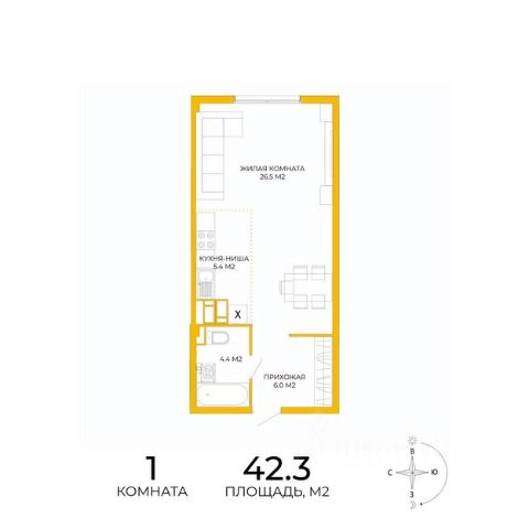 Такая планировка очень комфорта для проживания не только одного человека, но и для семьи с ребенком.