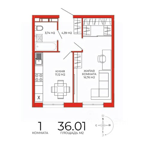 • ✅ Минимальная площадь: 33,3 м²