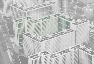 Легкие воздушные фасады домов, увеличенные окна, светлые тона создают ощущение, будто дома пронизаны светом. Первые два этажа будут облицованы керамогранитом. Выше навесной фасад в светло-серой и графитовой гамме в цветах, присущих исторической застройке города. Входные группы комплекса визуально напоминают порталы в обрамлении классических колонн.На первом этаже расположится зона коворкинга, оформленная в стиле библиотеки.