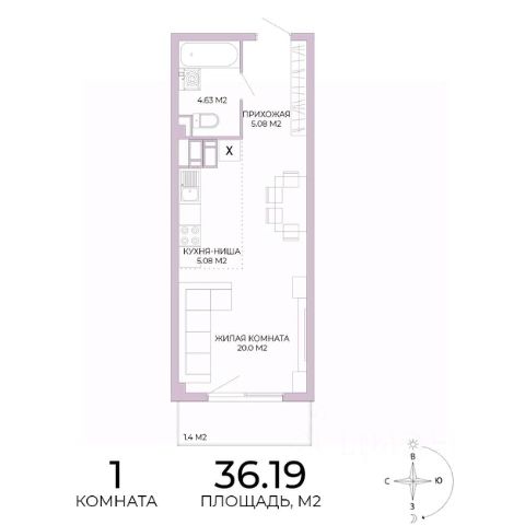 - еще один отдельный санузел (2,04); - балкон.