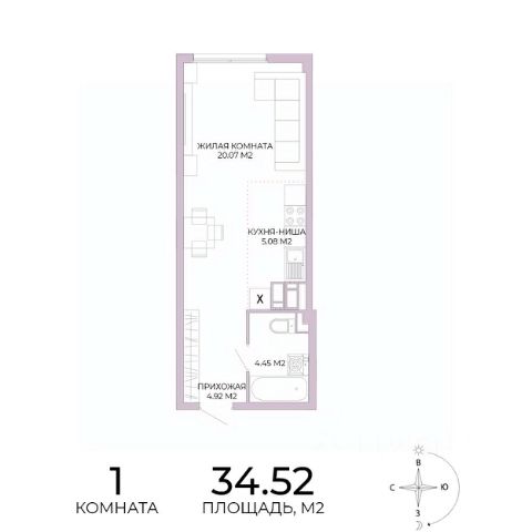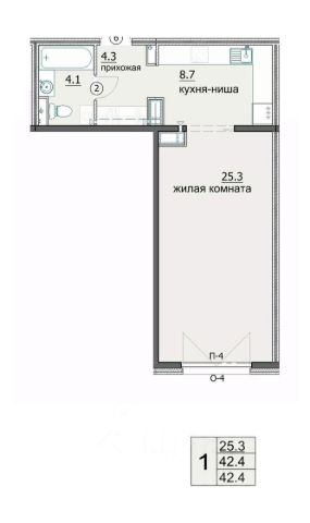 Жилая площадь: 25,38 м2