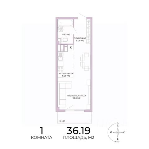 - еще один отдельный санузел (2,04); - балкон.