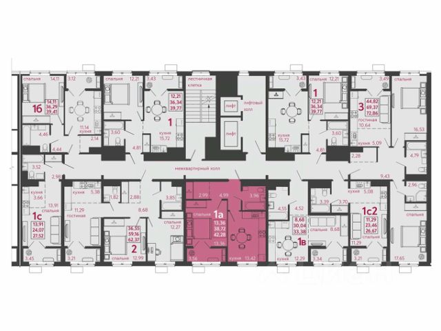 Общая площадь: 44,01 м2