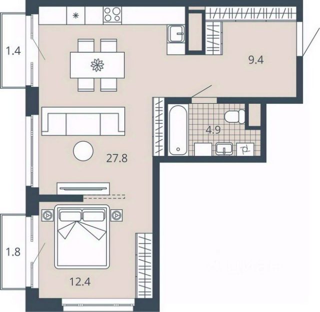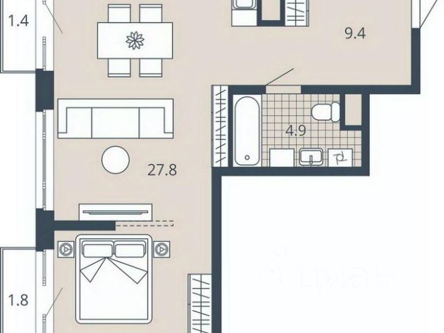 БОЛЬШАЯ 1-КОМН. КВАРТИРА ЕВРОДВУШКА! ПРОСТОРН. планировка с большой КУХНЕЙ-ГОСТИНОЙ, отдельн. комнатой, просторн. коридором с отдельн. ГАРДЕРОБН., функцион. сан. узлом и огромной ЛОДЖИЕЙ! ВЫСОКИЕ потолки 2,7м!