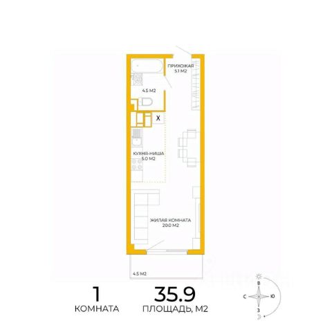 Общая площадь 34,6 кв.м.