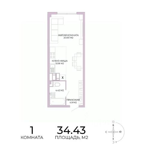 Два полноценных раздельных окна, как в классической однокомнатной квартире! Это обеспечивает отличную инсоляцию и визуально расширяет пространство.
