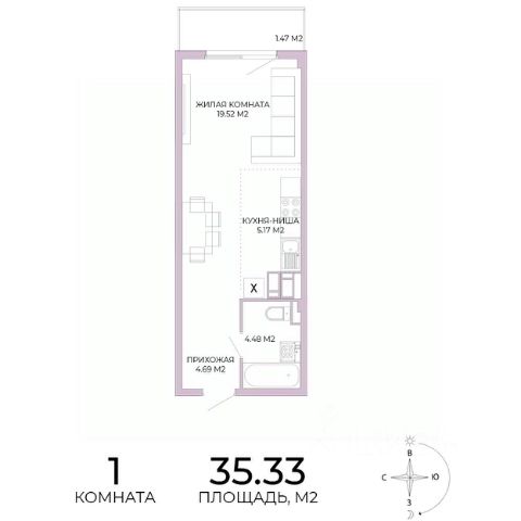 Максимум полезной площади: Компактная лоджия (всего 3,6 кв.м) не "съедает" метраж, оставляя больше полезного пространства внутри!