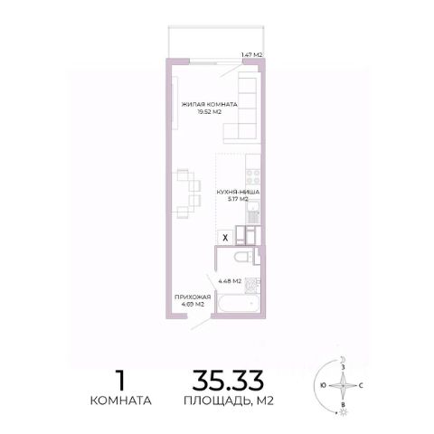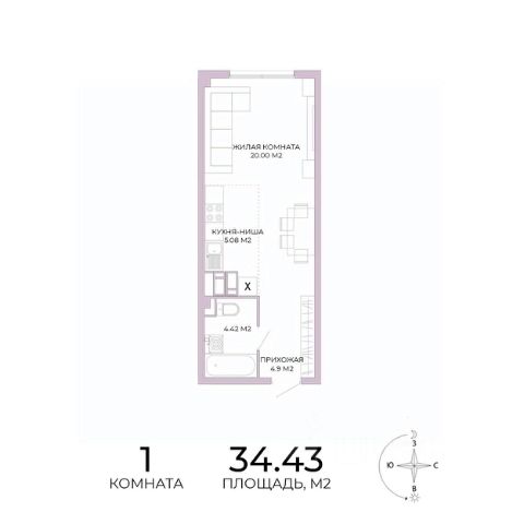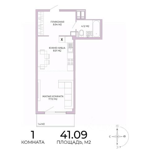 Площадь: Общaя 30,9 кв.м (включая лоджию 3,6 кв.м). Полeзнaя площадь (бeз лоджии) - 27,3 кв.м, c учетом 1/2 лоджии - 29,1 кв.м.