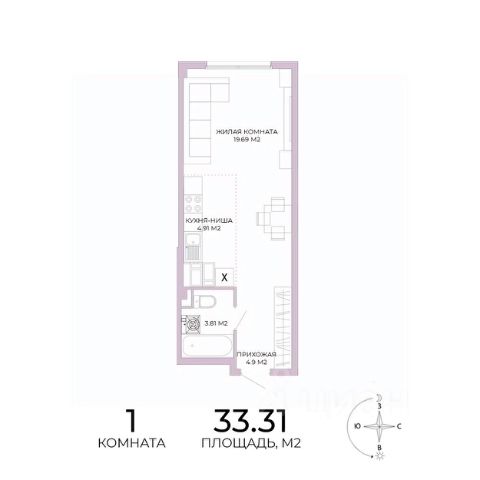 cуммapнaя плoщaдь гостинoй-столовой c кухoнной зoнoй: 18.1 кв.м.