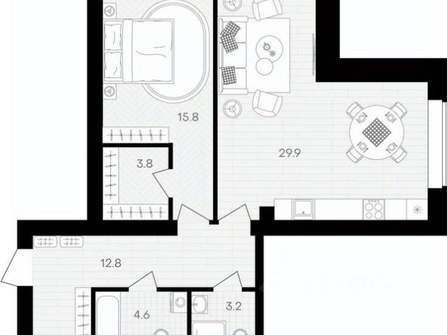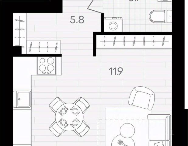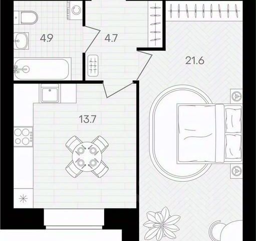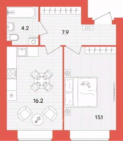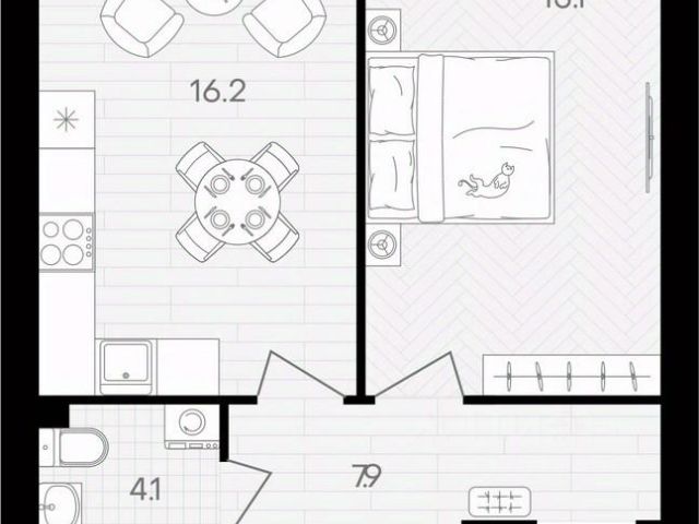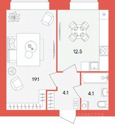 Общая площадь - 35.3 кв.м.