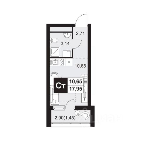 Остается в квартире вся встроенная мебель: шкаф в прихожей, шкаф купе в комнате, стенка со столом письменным, туалетный столик и тумбочка.