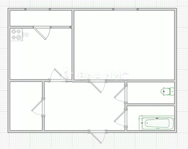 2. Планировка квартиры 44м2 евродвушка, есть:
