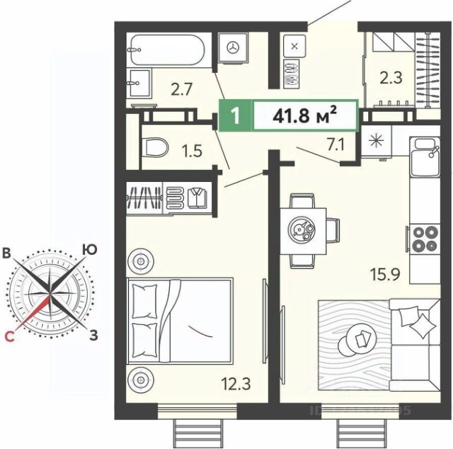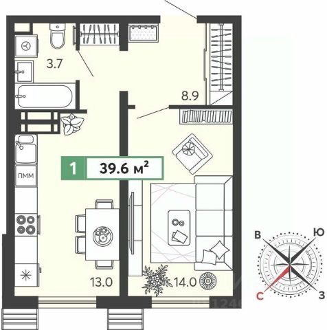 Просторная 1-комн. квартира в ЖК "Спутник" на 1 этаже. Квартира без отделки, после выдачи ключей можно делать ремонт. Общая площадь: 37.9 кв.м., жилая: 9.1 кв.м., площадь просторной кухни-столовой: 15.3 кв.м. Все окна выходят на одну сторону. В квартире одна лоджия, один совмещенный санузел. Высота потолков 2.68 м.