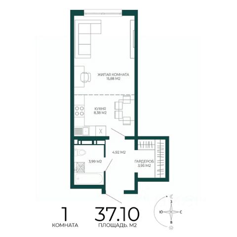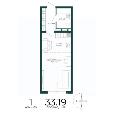 Продаётся 1-комнатная квартира в строящемся доме (1 этап ( 1 строение)), срок сдачи: III-кв. 2027, общей площадью 33.19 кв.м., на 17 этаже. Новый жилой комплекс "Чаадаев" от застройщика "Территория Жизни" расположен по адресу Россия, Пенза, улица Чаадаева, 60Б/2.