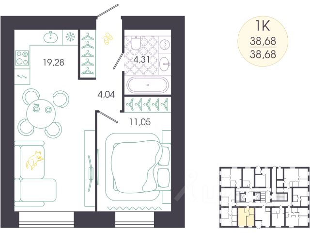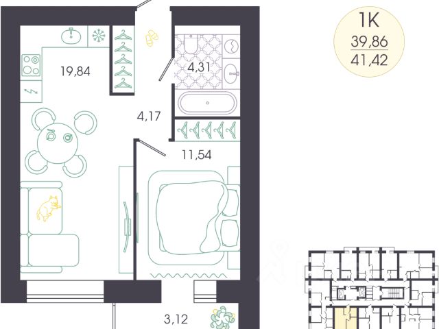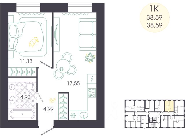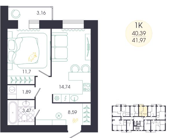 Продаётся 1-комнатная квартира в строящемся доме (Корпус 1), срок сдачи: IV-кв. 2027, общей площадью 40.39 кв.м., на 1 этаже. Новый жилой комплекс "Доброе" от застройщика "ГК Автор" расположен по адресу Россия, Пенза, Колышлейская улица, 7.
