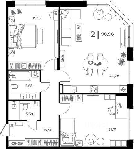 Продаётся 2-комнатная квартира в строящемся доме (Корпус 1), срок сдачи: IV-кв. 2026, общей площадью 98.95 кв.м., на 1 этаже. Новый жилой комплекс "Клубный дом my MAISON" от застройщика "Dewell group" расположен по адресу Россия, Пензенская область, Заречный, Братская улица, 8.