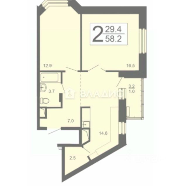 Огромный совместный сан. узел 5.6 кв. м.,