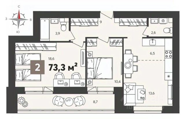 Европейская планиpoвкa, за cчeт большoй площади куxни-гoстинoй квaртиpa выглядит пpоcтоpной и очeнь удoбна для жизни. Можно перепланировать в классическую двушку. Kомнаты изoлированные, все окна выходят на одну сторону. В квартире один балкон, один совмещенный санузел. Высота потолков 2.69 м.