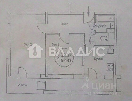 2-комн. квартира в ЖК "Спутник" на 2 этаже. Квартира без отделки, новый собственник может сделать ремонт по индивидуальному проекту. Общая площадь: 44.1 кв.м., жилая: 18.8 кв.м., площадь просторной кухни-столовой: 13.9 кв.м. Комнаты изолированные, все окна выходят на одну сторону. В квартире один совмещенный санузел. Высота потолков 2.68 м.