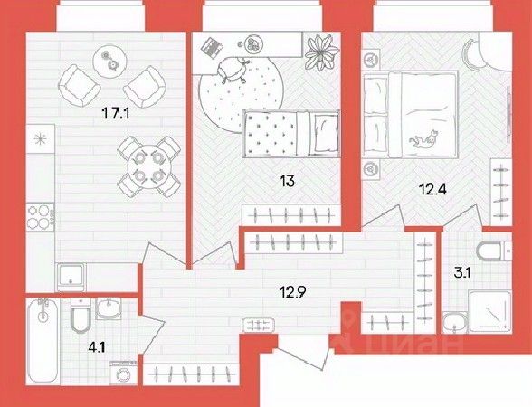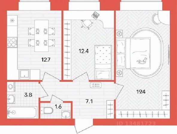жилая: 24.2 кв.м., (12,8+11,4)