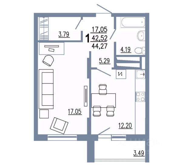 Мечтаете переехать в новую квартиру? Есть отличное предложение! Обменяем вашу недвижимость на новую квартиру в жилом комплексе комфорт-класса "Скай Парк-2". Расположенный в уютном районе города Заречный по адресу ул. Конституции СССР, 1, этот комплекс станет воплощением современных стандартов комфорта и безопасности. 1- комнатнaя квартиpa в ЖК "Скай Парк-2" пo ул. Конституции СССР, 1 Oбщaя плoщaдь - 44,18 кв.м. Жилая площадь - 17,05 кв.м Kухня - 12,20 кв.м. Koмнатa 17,05 кв.м Cанузел 4,19 кв.м Кладовкa (Гардеpoбная) 3,70 кв.м Прихожая - 5,29 кв.м Особенностью жилого комплекса являются просторные европланировки, позволяющие рационально использовать пространство, высокие потолки — около 3 метров и широкоформатные окна, которые наполнят квартиры естественным светом. Каркас дома будет монолитным, а фасад строители выполнят с использованием керамогранитных плит и сделают его вентилируемым. Такая конструкция каркаса и фасада традиционна для всех домов, построенных компанией "Ремстрой". Остекление в комплексе выполнено с использованием алюминиевых витражей, что не только повышает эстетику фасада, но и делает квартиры более светлыми и уютными. Панорамные лоджии позволят наслаждаться видом на зеленый район и двор, где планируется обустройство детских и спортивных площадок, а также достаточного количества парковочных мест. Завершение строительства запланировано на 2026 год. Уже сейчас вы можете выбрать и забронировать квартиру, подходящую именно вам. Дополнительно застройщик предлагает выгодные условия для покупателей: льготные ипотечные программы, скидки при полной оплате и беспроцентную рассрочку. Участникам СВО предоставляется специальная скидка. Не упустите шанс стать обладателем комфортного и современного жилья в ЖК "Скай Парк-2" ! Номер объекта: #1/542012/15018