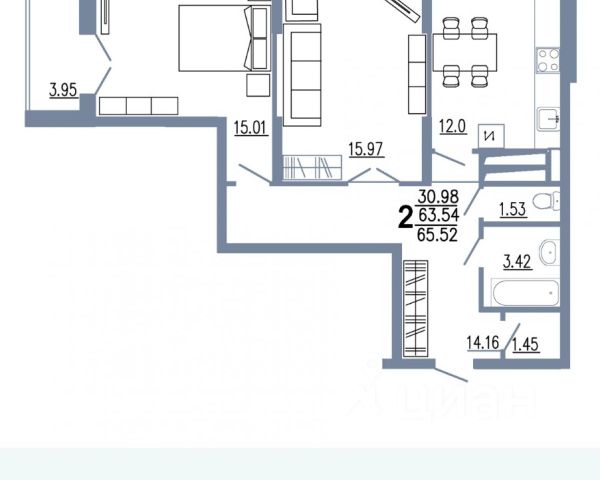 Отличная возможность приобрести квартиру уже с готовым ремонтом! Вы можете под себя выбрать какой ремонт вы хотите. И в конце 2026 года уже заехать и сразу жить! Отделка будет включать в себя: -разведенная по всей квартире электрика; -на полу ламинат или линолеум; -на стенах -обои под покраску; -натяжной потолок с точечными светильниками; -сан.узел в кафеле современного образца -в сан.узле будет установлены ванная, раковина, унитаз; -входная металлическая дверь; -современные межкомнатные двери. За два года стройматериалы подорожают, а сейчас есть возможность забронировать по старым ценам. В квартире удачная планировка: две изолированные комнаты правильной формы, раздельный сан.узел, просторная кухня-гостиная, лоджия с панорамным остеклением, широкий коридор. Одним из главных преимуществ ЖК "SKYPARK-2" является вентилируемый фасад из керамогранита. Эта современная технология не только придает зданию изысканный и современный вид, но и обеспечивает отличную теплоизоляцию, что поможет будущим жильцам сэкономить до 30% на оплате отопления. Летом же, благодаря такому фасаду, в квартирах будет сохраняться приятная прохлада. Остекление в комплексе выполнено с использованием алюминиевых витражей, что не только повышает эстетику фасада, но и делает квартиры более светлыми и уютными. Панорамные лоджии позволят наслаждаться видом на зеленый район и двор, где планируется обустройство детских и спортивных площадок, а также достаточного количества парковочных мест. Завершение строительства запланировано на 2026 год. Уже сейчас вы можете выбрать и забронировать квартиру, подходящую именно вам. Дополнительные выгодные условия для покупателей: льготные ипотечные программы, скидки при полной оплате и беспроцентную рассрочку. Участникам СВО предоставляется специальная скидка. Не упустите шанс стать обладателем комфортного и современного жилья в ЖК "SKYPARK-2" ! Номер объекта: #1/542049/15018