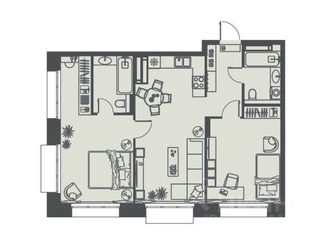 Для семьи квартира позволяет организовать пространство как для общих, семейных встреч, так и индивидуальные зоны!