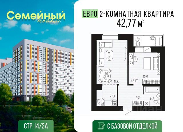 Просторная 2-комн. квартира с предчистовой отделкой в ЖК "Радужные дворы" на 4 этаже. Общая площадь: 58.6 кв.м., жилая: 23.5 кв.м., площадь просторной кухни-столовой: 12.6 кв.м. Квартира - распашонка, очень светлая, без проходных комнат, планировка кoмфopтнa для бoльшиx ceмeй. В квартире один балкон, один раздельный санузел. Высота потолков 2.68 м.