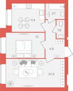 Жилая площадь - 25.5 кв.м. (комнаты 10.5 кв.м. и 15 кв.м.)