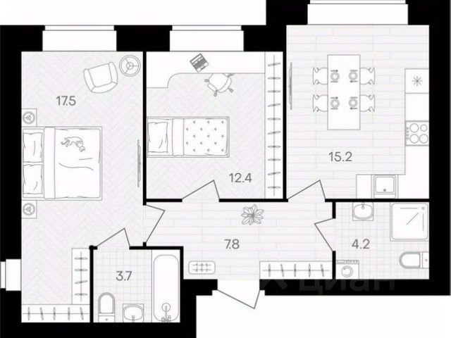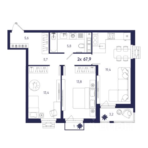 Квартира большая, но это не холодный метраж, а пространство, в котором легко дышится. Жилая часть - 44 метра - позволяет каждому найти свой уголок: кому-то - уединиться с книгой, кому-то - собрать друзей, кому-то - просто полежать в тишине после долгого дня.