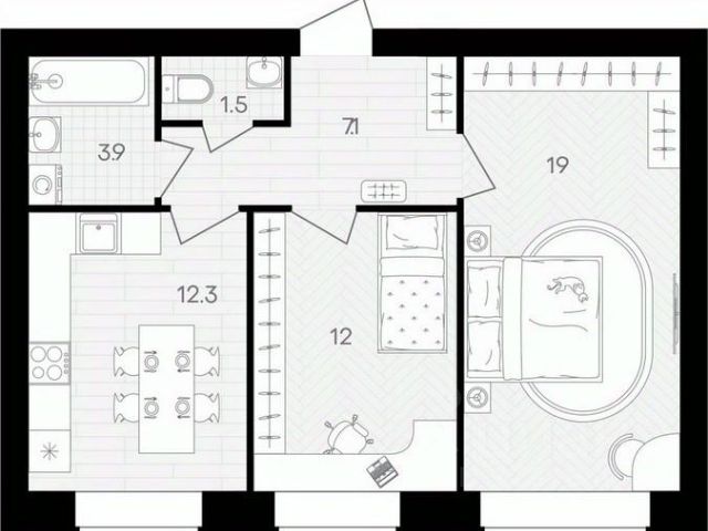 Кухня 9,1 метра - отдельная история. Здесь не надо жаться к плите, пока кто-то проходит мимо. Здесь можно поставить настоящий стол, за которым поместится вся семья, и не спешить за завтраком. Окно выходит во двор, и пока закипает чай, вы видите, как во дворе играют дети или сосед не спеша идёт до магазина.