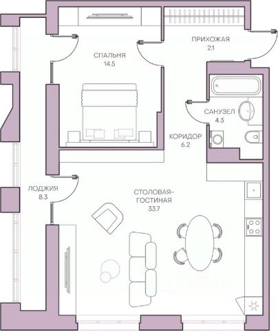 2-комн. квартира с предчистовой отделкой в ЖК "Ньютон" на 7 этаже. Общая площадь: 81.15 кв.м., жилая: 40.74 кв.м., площадь просторной кухни-столовой: 14.38 кв.м. Комнаты изолированные, все окна выходят на одну сторону. В квартире одна лоджия, один совмещенный и один раздельный санузел. Высота потолков 3.1 м.