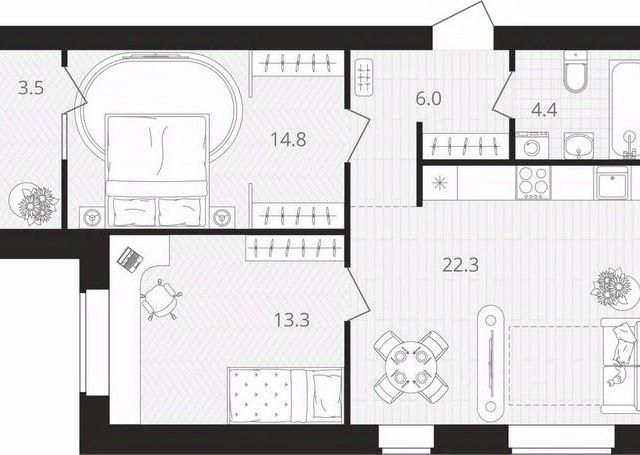 Евродвухкомнатная квартира представляет собой кухню-гостиную и отдельное личное пространство - спальня. Это самое популярное на рынке недвижимости планировочное решение. Кухня-гостиная данной квартиры — это прекрасное место для приема гостей. Вам будет удобно подавать на стол или, например, доготавливать блюда, в то же время "не выходить" из процесса разговора с друзьями. В кухне-гостиной будет удобно находиться даже большой компанией, поскольку площадь позволяет вместить в себя и диван, и зону TV, и обеденную зону. В спальне, присутствует место хранения для повседневной одежды, так же можно организовать рабочее место у окна. Благодаря расширенному остеклению, пространство наполняется большим количеством дневного света. Отдельная гардеробная комната расположенная при входе это рациональный способ решить вопрос компактного размещения вещей. Она обеспечивает сохранность предметов одежды и обуви, когда они долгое время не востребованы, а также позволяет содержать в идеальном порядке вещи, которые используются ежедневно. Квартира, куда хочется возвращаться, отдыхать и проводить время с родными и близкими! Этапы сделки: Одобрение ипотеки (при необходимости) Бронирование квартиры Подготовка ДДУ Согласование с банком ДДУ (при необходимости) Открытие счета эскроу Подписание КД (при необходимости) Подписание ДДУ Подписание соглашения на проведение отделочных работ Регистрация ДДУ в Росреестре Оплата Получение ключей *ДДУ-договор долевого участия *КД-кредитный договор кв 119