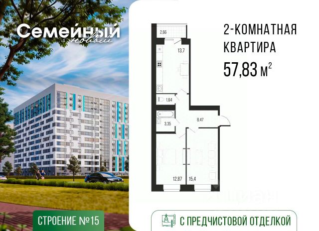 Жилая площадь 27.8 кв.м. (15.8 + 12)