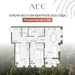 ЛЕС wellness-квартал в экологически чистом районе Ахуны Сдача первой очереди летом 2026 года! Квартиру можно посмотреть уже сейчас Большой выбор условий оплаты от DEWELL group: - Ипотека от 4,6% без удорожания - Рассрочка до конца строительства 0% - Рассрочка до 5 лет, без участия банка - Рассрочка в первоначальным взносом 1 000 000 рублей - TRADE IN от застройщика Преимущества wellness-квартала ЛЕС: Собственный лесной парк, где под тенью сосен расположилось множество зон для отдыха и развлечений: - Зоны для занятий йогой - Беседки для пикника - Детское пространство с горками, батутами и качелями - Универсальная спортивная площадка летом, которая зимой превращается в каток Дворовое пространство: - Детские велодорожки на территории двора - Навесы с ширмами для отдыха - Детское пространство с площадкой для игры с водой, большая песочница с навесом - Гамаки и лежаки для тихого отдыха -Спортивные зоны с теннисными столами *Огороженная и охраняемая территория двора без машин Авторские холлы с зоной ожидания, санузлами, колясочными и велосипедными Квартиры с видом на лес: - Просторные кухни-гостиные - Мастер-спальня - Закрытые лоджии - Летние лоджии - Уникальные лоты с потолками 3,3м Расположение: -Ввело-лыже-роллерная трасса-1 мин пешком -Школа 19/Детский сад 23- 5 мин на машине -Открытый бассейн-6 мин на машине -Теннисный корт "Семейный"-6 мин на машине -Русская охота-8 мин на машине -Высшая лига-15 мин на машине *Стоимость актуальна на момент размещения объявления