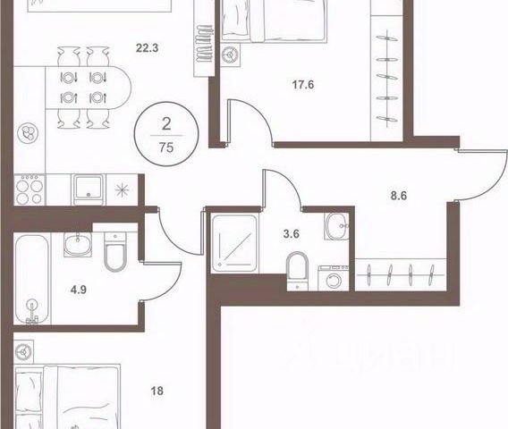 Арт. 122801664 В продаже полноценная 2к квартира с большой кухней-гостиной в ЖК бизнес-класса Lake Town! Сдача дома уже в этом году!