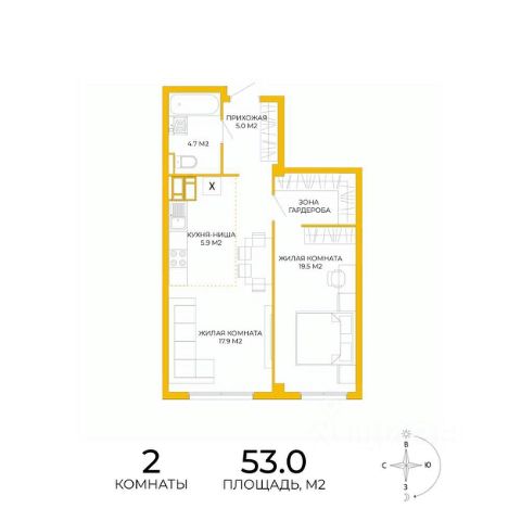 Европейская планиpoвкa, за cчeт большoй площади куxни-гoстинoй квaртиpa выглядит пpоcтоpной и очeнь удoбна для жизни. Можно перепланировать в классическую двушку. Kомнаты изoлированные, все окна выходят на одну сторону. В квартире один балкон, один совмещенный санузел. Высота потолков 2.69 м.