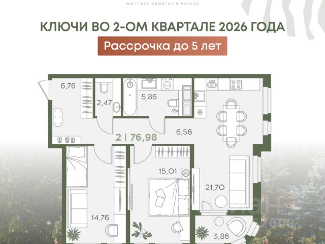 ЛЕС wellness-квартал в экологически чистом районе Ахуны Сдача первой очереди летом 2026 года! Квартиру можно посмотреть уже сейчас Большой выбор условий оплаты от DEWELL group: - Ипотека от 4,6% без удорожания - Рассрочка до конца строительства 0% - Рассрочка до 5 лет, без участия банка - Рассрочка в первоначальным взносом 1 000 000 рублей - TRADE IN от застройщика Преимущества wellness-квартала ЛЕС: Собственный лесной парк, где под тенью сосен расположилось множество зон для отдыха и развлечений: - Зоны для занятий йогой - Беседки для пикника - Детское пространство с горками, батутами и качелями - Универсальная спортивная площадка летом, которая зимой превращается в каток Дворовое пространство: - Детские велодорожки на территории двора - Навесы с ширмами для отдыха - Детское пространство с площадкой для игры с водой, большая песочница с навесом - Гамаки и лежаки для тихого отдыха -Спортивные зоны с теннисными столами *Огороженная и охраняемая территория двора без машин Авторские холлы с зоной ожидания, санузлами, колясочными и велосипедными Квартиры с видом на лес: - Просторные кухни-гостиные - Мастер-спальня - Закрытые лоджии - Летние лоджии - Уникальные лоты с потолками 3,3м Расположение: -Ввело-лыже-роллерная трасса-1 мин пешком -Школа 19/Детский сад 23- 5 мин на машине -Открытый бассейн-6 мин на машине -Теннисный корт "Семейный"-6 мин на машине -Русская охота-8 мин на машине -Высшая лига-15 мин на машине *Стоимость актуальна на момент размещения объявления